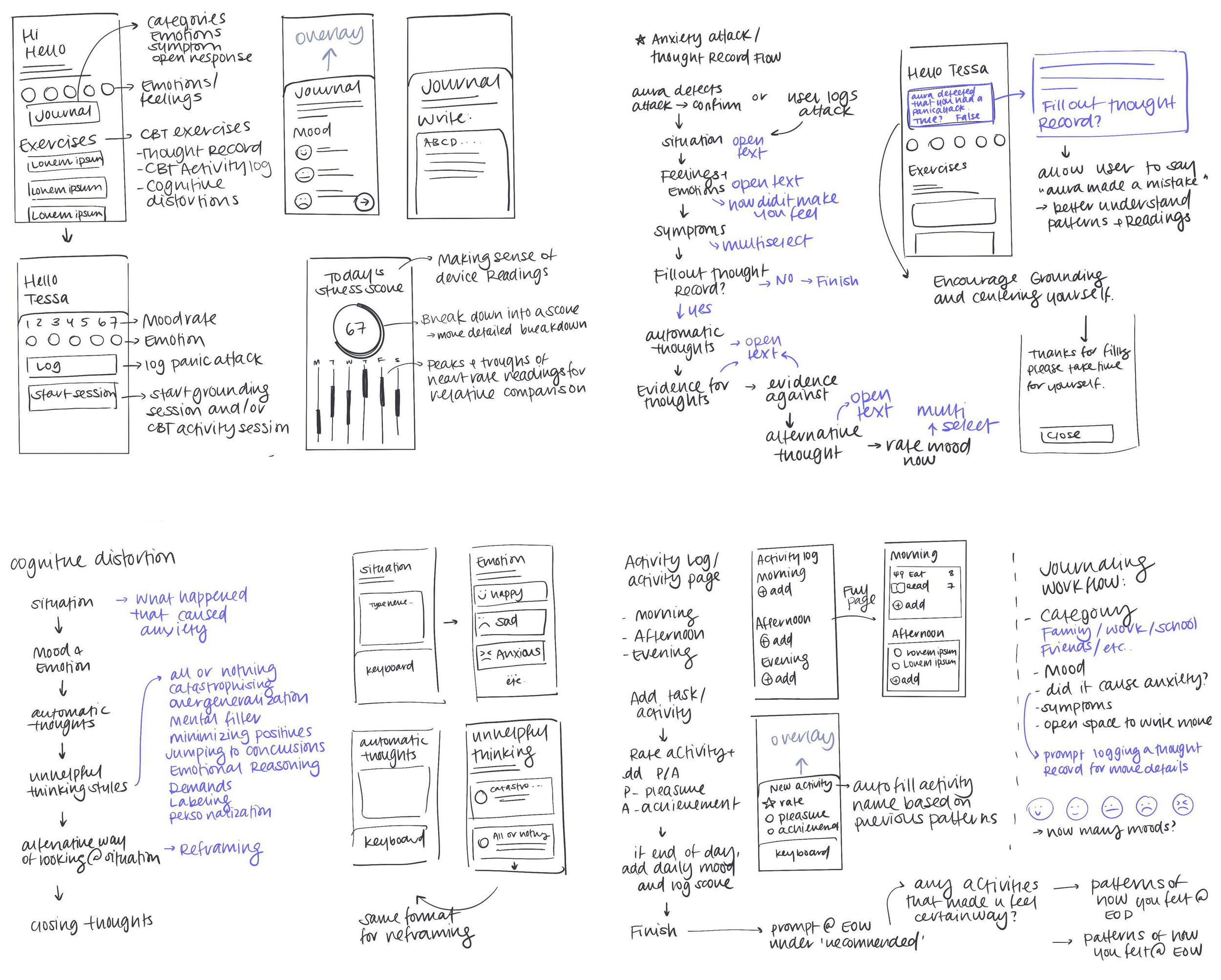 I consulted a licensed Social Worker to gain insight on specific CBT activities that are recommended to patients for managing anxiety, and then brainstormed how to turn these paper-based journaling activities into app-based exercises.